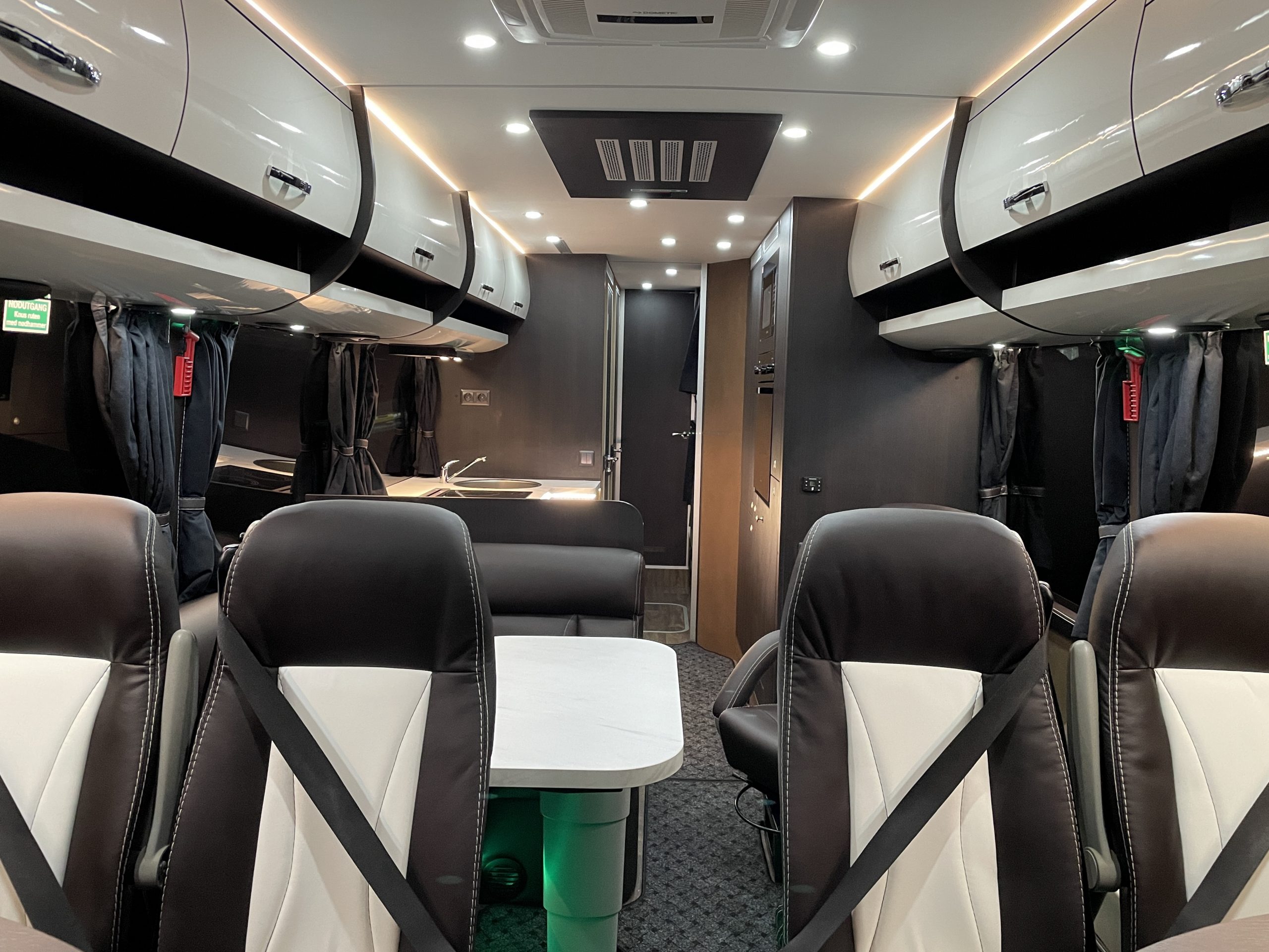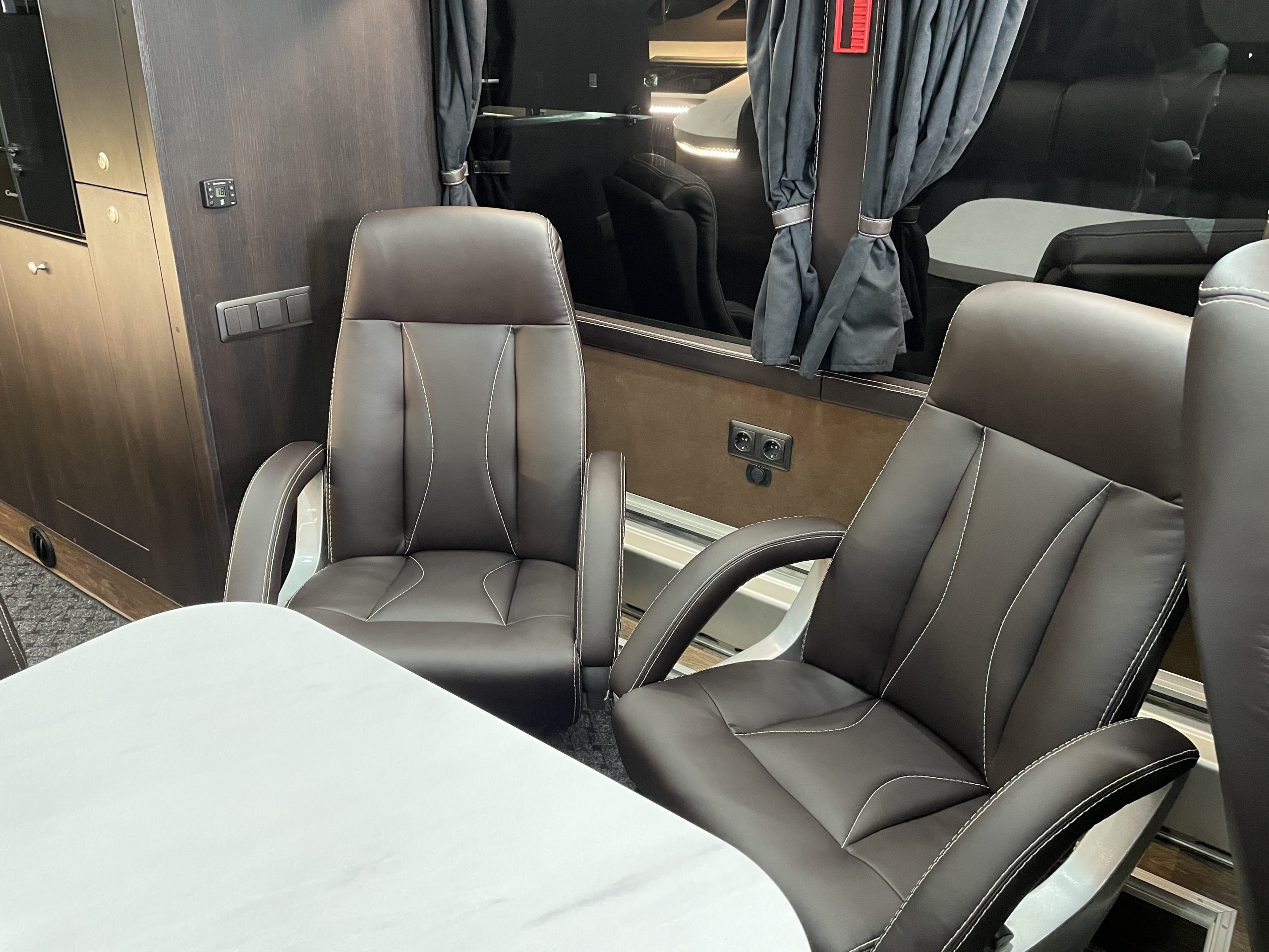 SUPER tvarkingas 10 m autobusas, registruotas kaip M1 kemperis! Čia nieko netaupoma – autobusas puikiai tinka tiek vasaros, tiek žiemos atostogoms! Įranga, be kita ko: „Premium style“ dizainas Virtuvė su VISA įranga Žiemos izoliacija Dyzeliniai šildytuvai ir grindinis šildymas DIDELĖ elektros sistema su ličio baterijų bloku ir generatoriumi DAR DAUGIAU +++