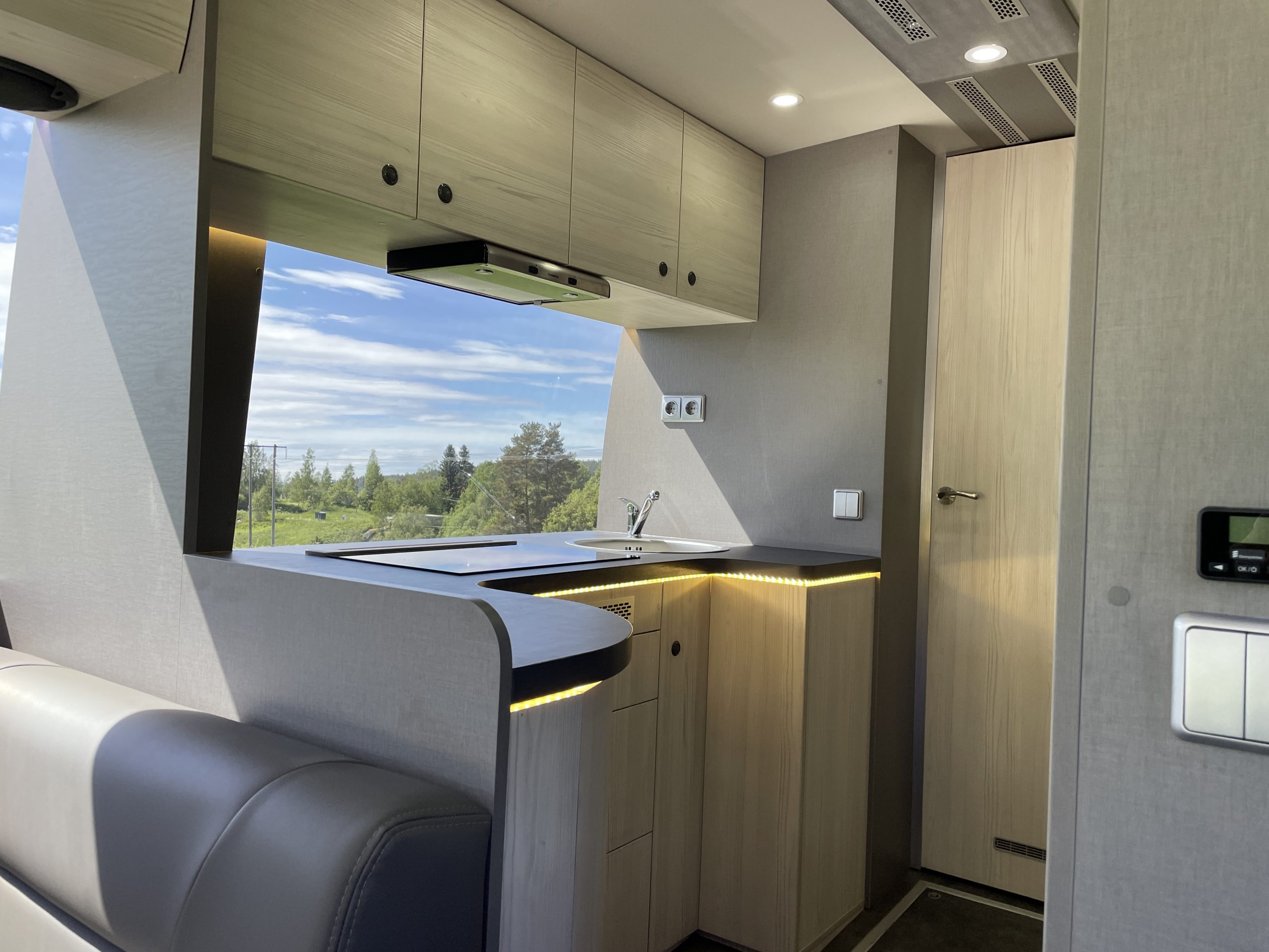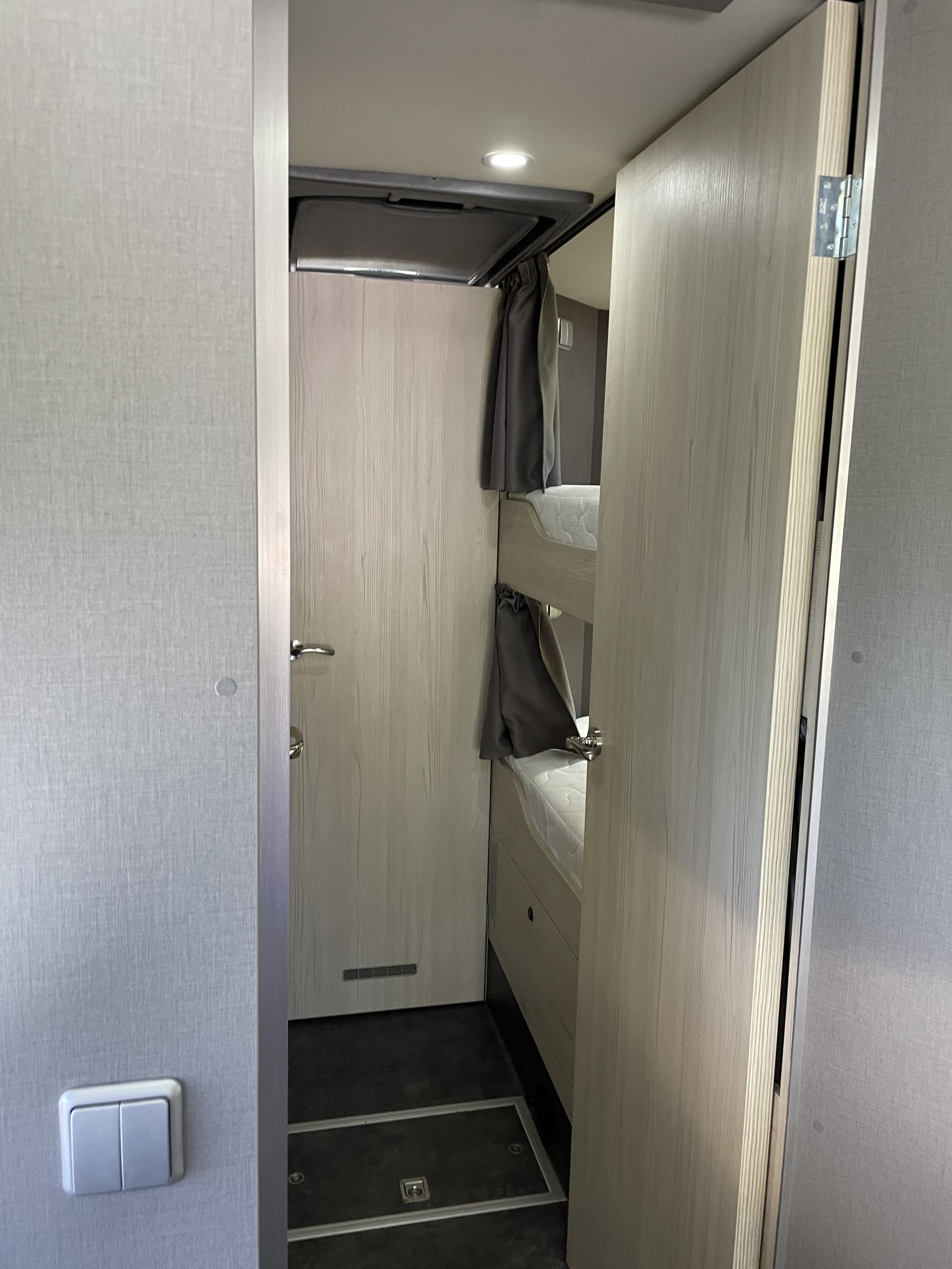 Nuostabus autobusas, kuriame nieko netaupoma! Atnaujintas iki 2013 m. išvaizdos, todėl neįmanoma pasakyti, kad tai senesnis modelis. Autobusas pastatytas ir registruotas kaip M1 kemperis, vairuojamas su C kategorijos pažymėjimu! Įranga, be kita ko: Pilnai įrengta virtuvė su virykle, kaitlente, šaldytuvu/šaldikliu „Pagrindinis miegamasis“ autobuso gale, dviaukštė lova vienoje pusėje. Visos lovos turi savo skaitymo lempą ir USB jungtį Šilumos siurblys/kondicionierius + „Eberspächer D5“ oro šildytuvas Didelė svetainė autobuso viduryje. Sofos gali būti išskleidžiamos, kad atsirastų papildomos miegamos vietos Išklotas plytelėmis vonios kambarys su kriaukle, tualetu, dušo kabina. Grindinis šildymas Elektros sistema su išoriniu pajungimu, 3,5 kW inverteriu, dideliu baterijų bloku Patvirtintas 3500 kg kablio prikabinimas Skalbyklė + džiovyklė bagažo skyriuje Durų užraktas su programėle valdomu kodu DAR DAUGIAU +++