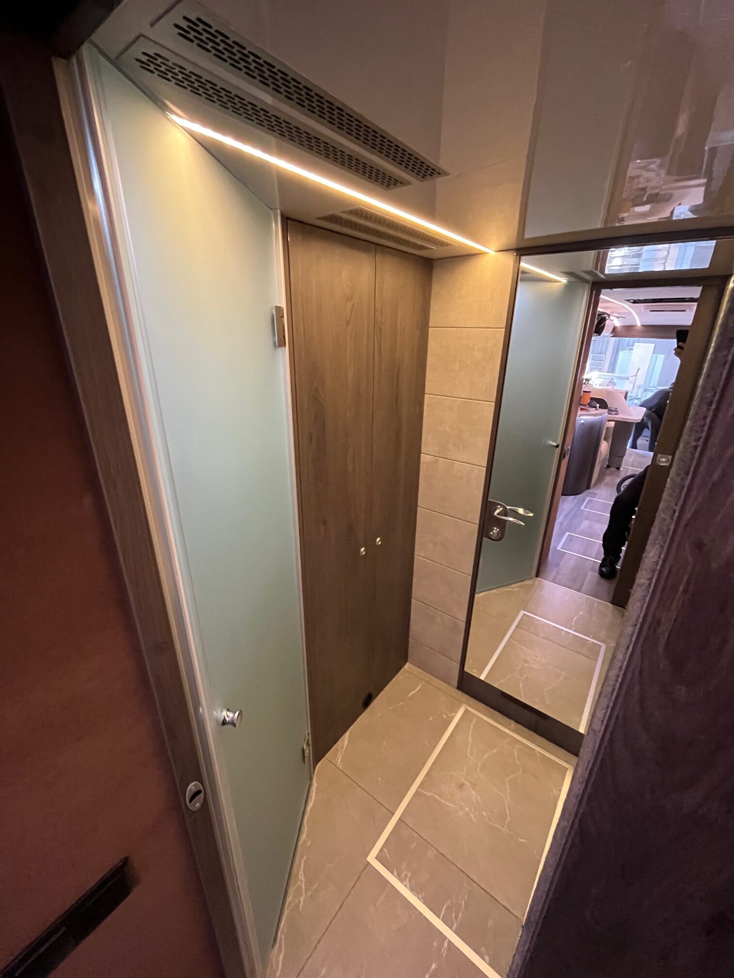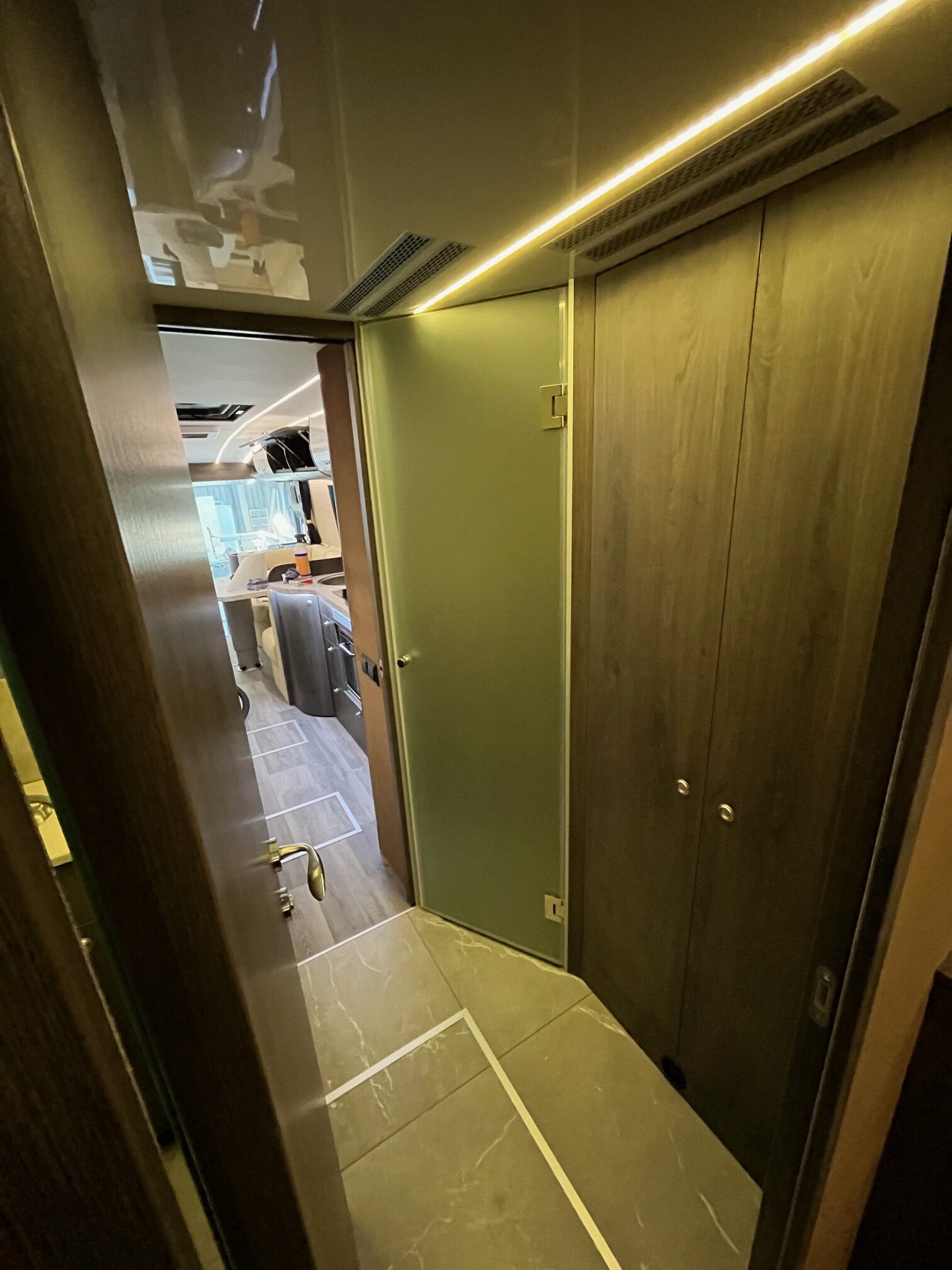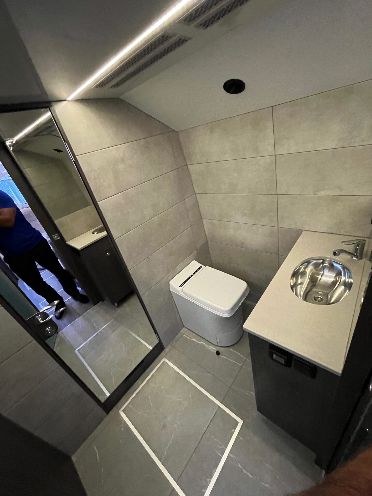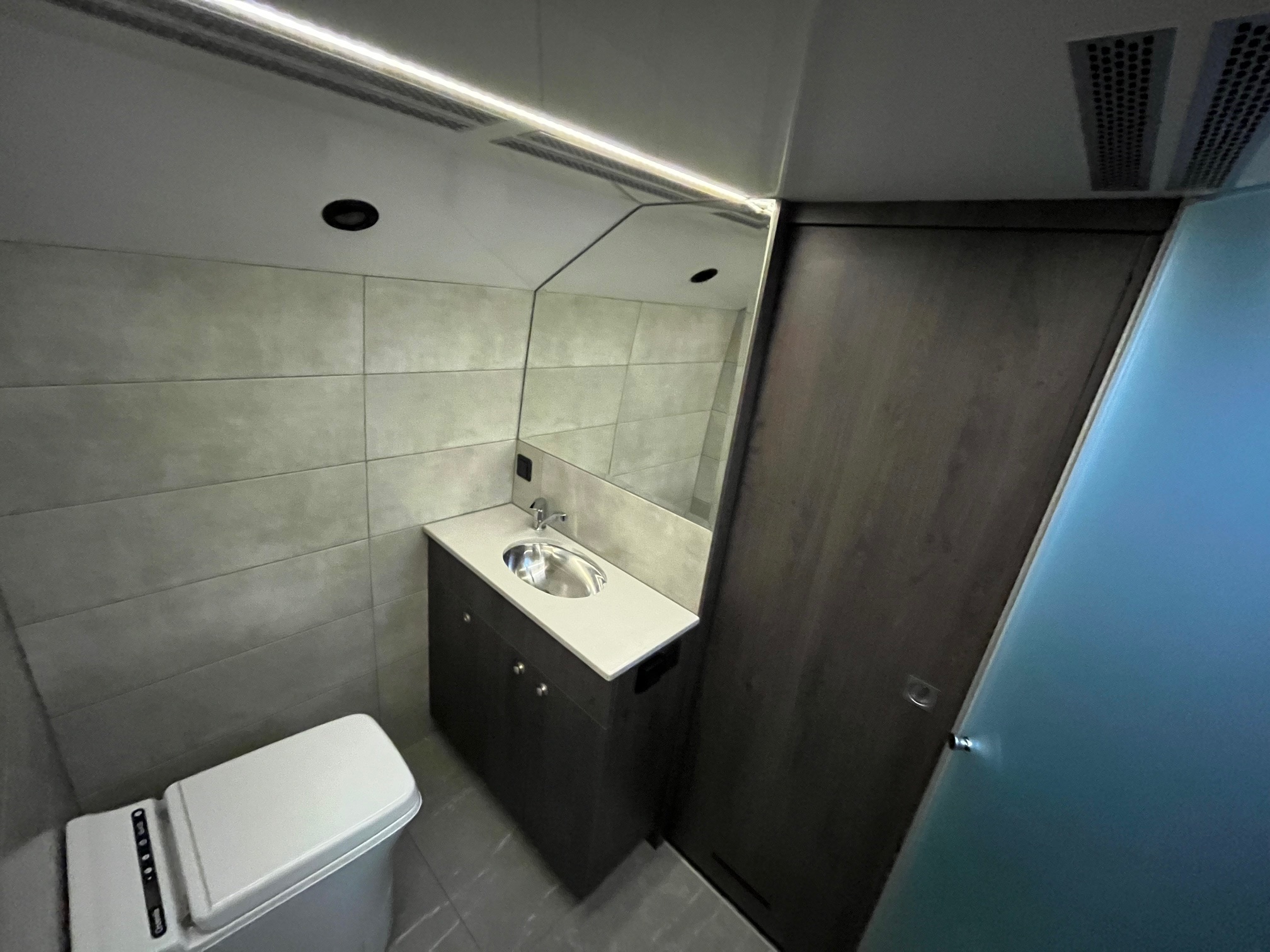 SETRA 10 m. Puikus 10 metrų kemperis su šviesios spalvos interjeru, visiškai šviesos nepraleidžiančiomis žaliuzėmis ant langu, pakeliamu televizoriumi ir šviečiančiu baru gėrimams.