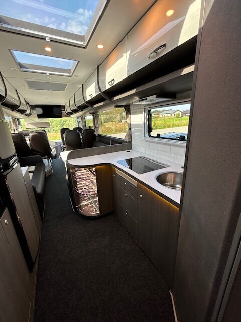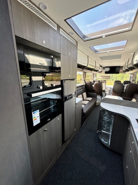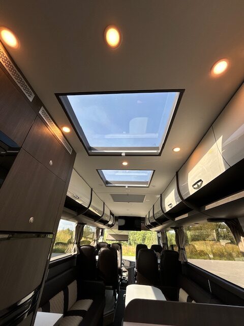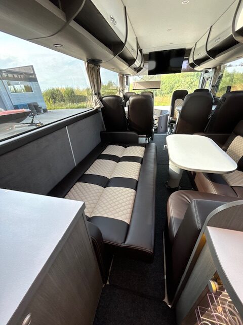 12 metru 10 vietų Setra Autobusas/Kemperis įrengtas mūsų partneriams Vokietijoje, pilnai pritaikytas pagal kliento poreikius,su „Thule Omnistor“ 6 metru markize,oro kondicionieriumi ir daug papildomos įrangos.