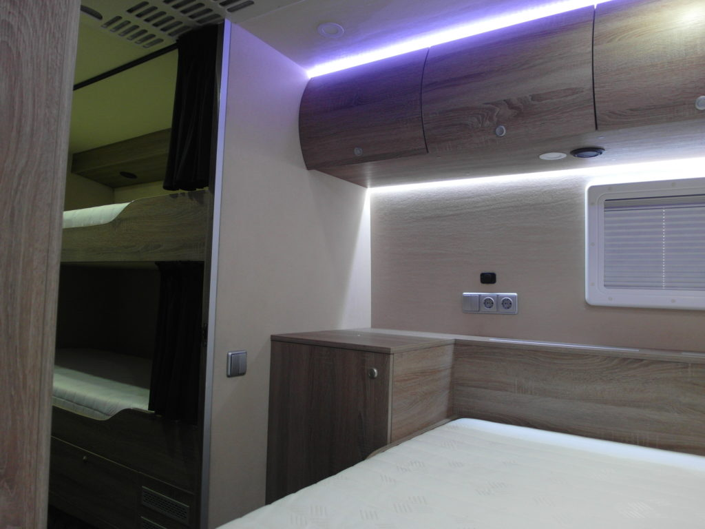 Tai tikrai puikus kemperis, kurio dizainas ir spalvų derinys tiesiog tobuli! Trumpa informacija apie autobusą: Pilnai įrengta virtuvė su virykle, kaitlente, šaldytuvu/šaldikliu ir vandentiekiu Atskiras pagrindinis miegamasis ir dviaukštės lovos 4 žmonėms Šilumos siurblys/kondicionierius Didelė svetainė/poilsio zona su išskleidžiamomis sofomis, kurios gali būti naudojamos kaip miegamos vietos Atskiras plytelėmis išklotas dušo ir tualeto kambarys su kriaukle, grindinis šildymas TV/multimedijos sistema Ir DAR DAUGIAU – šį grožį reikia pamatyti! Nuotraukas rasite čia: