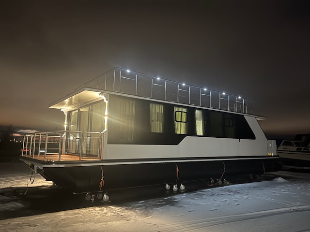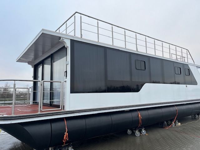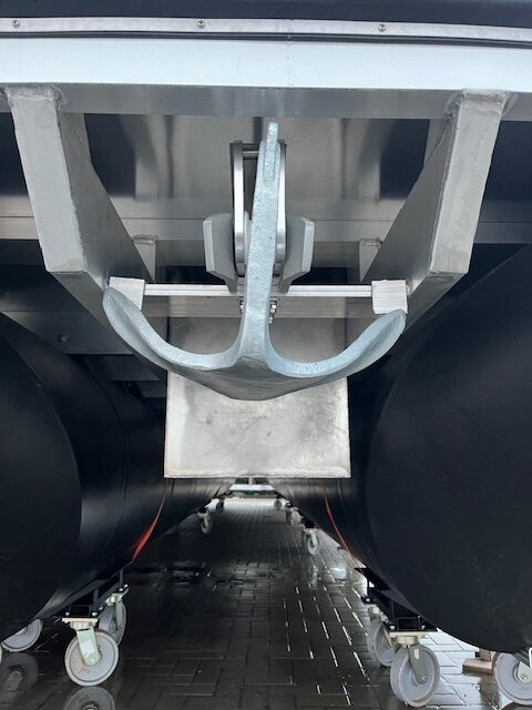Polietileno pontonai, prisukti prie aliuminio konstrukcijos su tvirta dugno plokšte