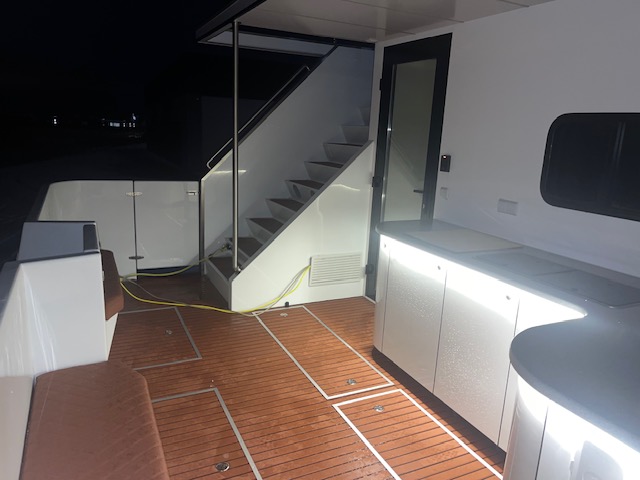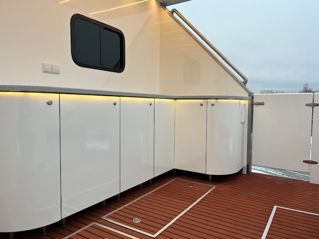 Kuro bakas – 300 l, gėlo vandens bakas – 850 l, integruoti į aliuminio platformą