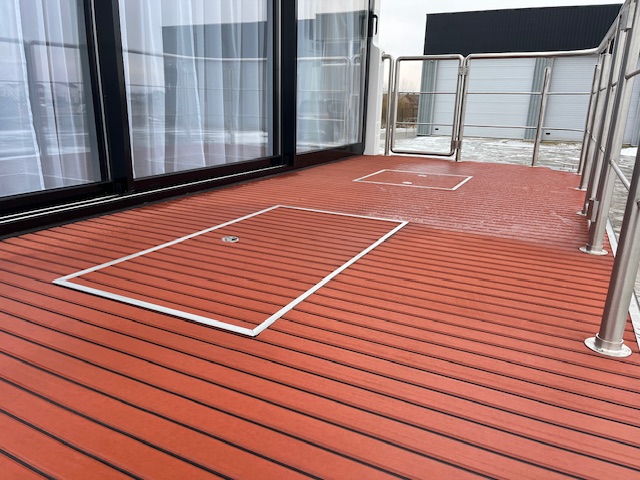 Terasos priekyje ir gale, taip pat DIDELĖ stogo terasa