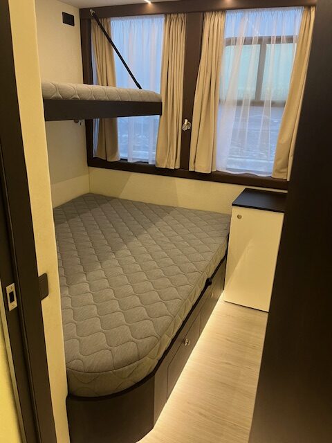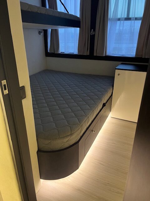 Mūsų mažasis modelis. Puikus pasirinkimas, jei nereikia daug miegamų vietų. Laive yra atskiras „pagrindinis miegamasis“ bei išskleidžiama sofa svetainėje.