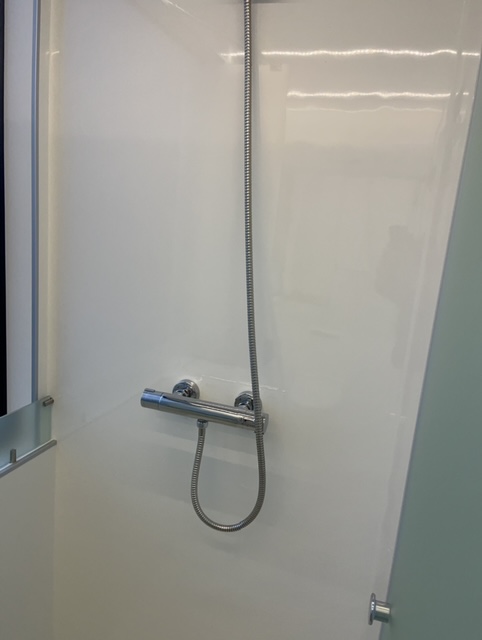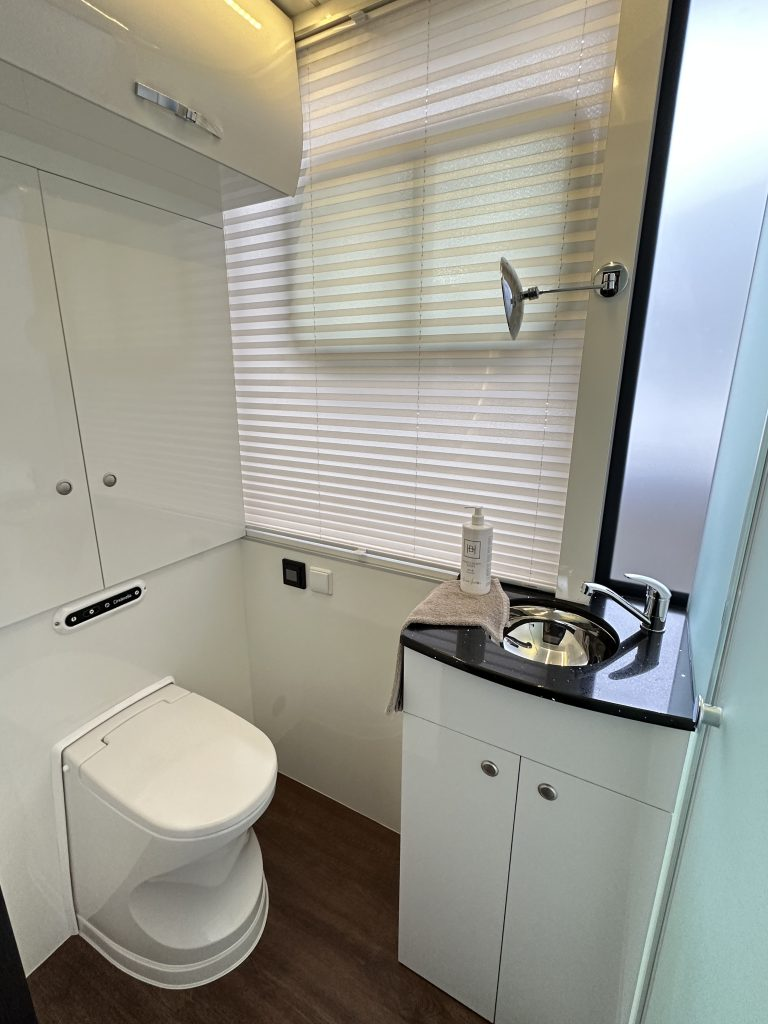 Vonios kambarys su dušu ir „Cinderella“ deginamuoju tualetu